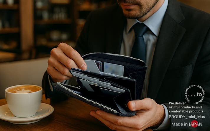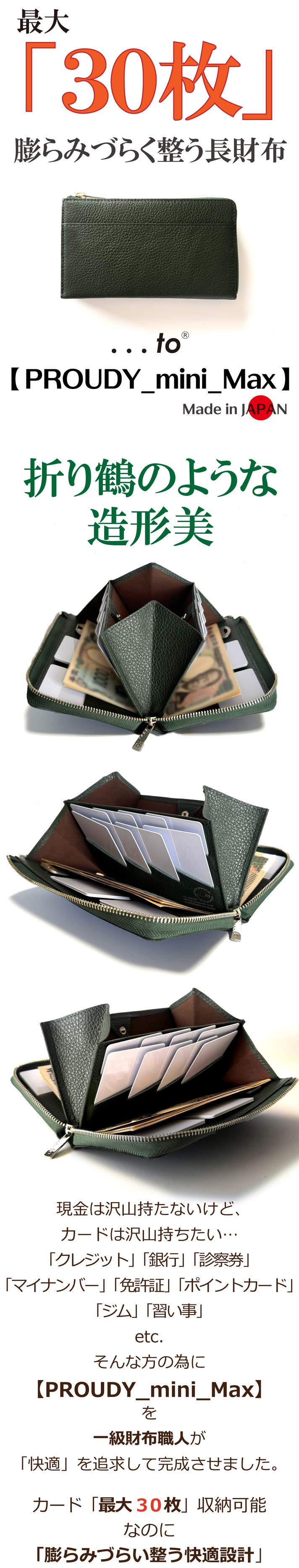 キャッシュレス時代の「今」に合わせて進化した上質でスタイリッシュでシック、そして最大30枚のカードを収納しても膨らみづらい長財布【PROUDY_mini_Max(プラウディ_ミニ_マックス)】を自信を持ってオススメします。