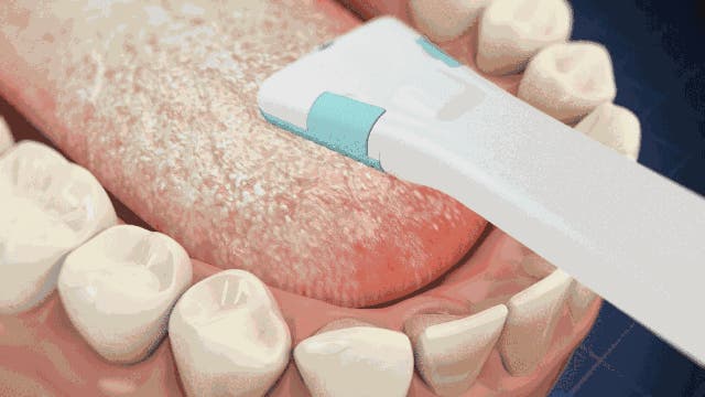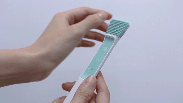 トロマッツの舌クリーナーは舌を磨くために舌に置いた時に360度で電流が発生します。敏感な歯や歯茎を刺激する心配がありません。