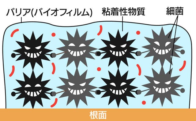 口の汚れの発生菌は「バイオフィルム」という生物膜をバリアにして集まっています。