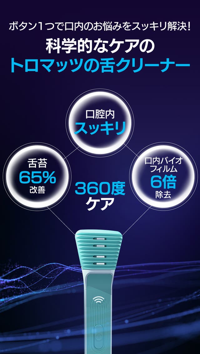 これからは、最先端の生体電気微電流波技術を使用したトロマッツの舌クリーナを毎朝使ってみてください!