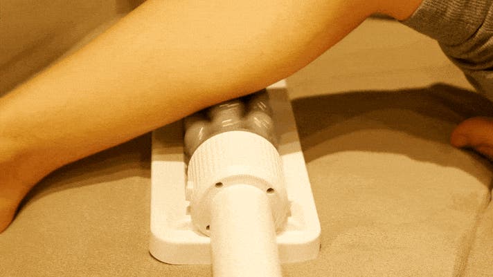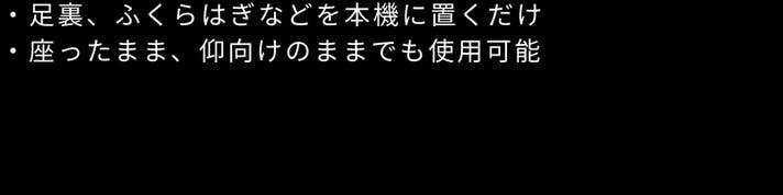A: 主に足裏〜ふくらはぎを中心とした下半身への使用を想定しています。そのほか、太もも裏や前ももなどの下半身、腹筋などにご使用いただけます。詳しくは付属の日本語説明書でご案内しております。