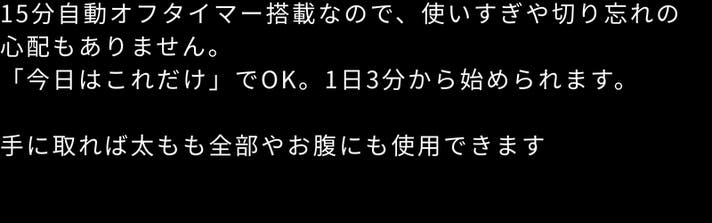 A: 1回あたり1部位あたり5分程度の使用を推奨しております。15分の自動オフタイマーを搭載しているため、使いすぎや切り忘れの心配もありません。毎日のリフレッシュとして短時間での使用をおすすめしています。