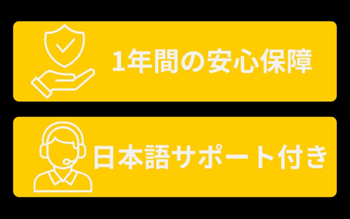 A: はい、ご購入日から1年間の製品保証が付いています。初期不良や不具合があった場合は、日本国内サポートにて対応いたします。