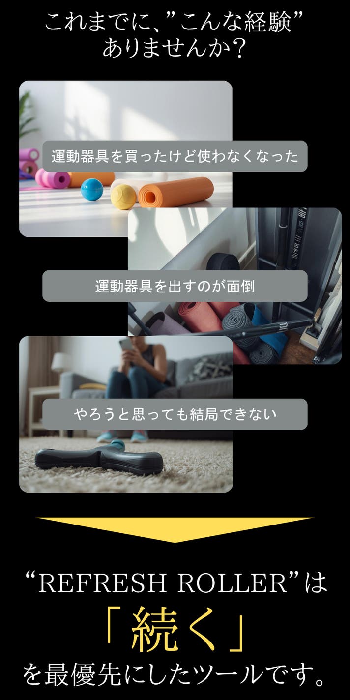 私がこの電動リフレッシュローラーを日本で紹介しようと思ったきっかけは、これまでいろいろ試しても、なかなか習慣として続かなかったことでした。