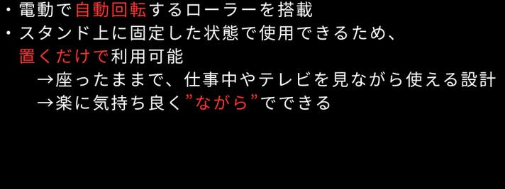 本製品は、そうした考え方をもとに開発された、日常に取り入れやすい電動ローラーです。