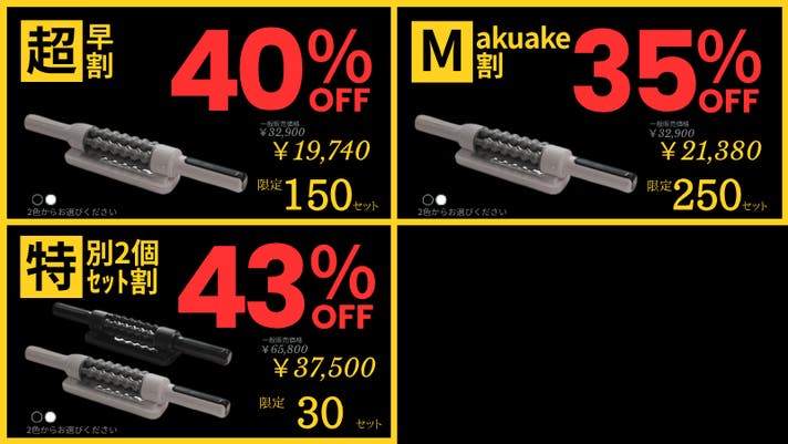 プロジェクトに関する情報 ・プロジェクトの属性:輸入商品 ・代理店によるサポート:製品保証1年間 ・プロジェクト実行者(国):日本 ・製品者(国):中国 ※並行輸入品が発生する可能性があります。正規以外での個人輸入等は、完全に防ぐことができない場合がございます旨、予めご了承のほどお願いいたします。 また、正規代理店を通じて購入することで、日本国内での流通に必要な各種認証の取得や、関税の適切な処理が担保されます。 ※一部国内に類似商品が出回っている場合がございます。弊社では他社の類似品に関してのお問い合わせには対応できませんのでご了承ください。 ※使用感などに関しては、感じ方に個人差が予想される製品でございます。そのため、使用感等に関する返品・返金はお受けいたしかねます。 ※初期不良以外に関する返品・返金はお受けいたしかねます。 ※初期不良またはご使用前の不具合が確認された場合に限り、返品・交換対応を承ります。 【対応条件】 商品到着後7日以内にご連絡いただいた場合に対応いたします。 ※不具合確認のための開封は問題ございません。 ※お客様都合による返品・交換(イメージ違い、注文間違い、使用感に関する理由など)はお受けできません。 【対応内容】 商品の状態を確認のうえ、以下いずれかの対応を行います。 ・良品との交換 ・部品交換 ・返金対応 ※対応内容は、状況に応じて個別に判断させていただきます。 【返金について】 返金対応となった場合は、原則としてお支払いいただいた商品代金を返金いたします。 【返品・交換時の送料】 初期不良・不具合が確認された場合の返品・交換送料は、当社負担といたします。 【ご連絡方法】 商品に不具合や不備がございましたら、商品到着後7日以内に、状態が分かる写真または動画を添えてご連絡ください。 ※デザイン・カラー・素材などの仕様が一部変更になる可能性がございます。 ※モニター環境によって、画像の色が実物と異なって見える場合がございます。 ※応援購入の数が想定を上回った場合、製造工程上の都合等により出荷時期が遅れる場合がございます。 ※皆様から想定を上回る応援購入を頂き、量産体制を更に充実させることができた場合、一般販売価格が予定価格を下回る可能性がございます。 ※本文中に記載させていただいたスケジュールは、あくまでプロジェクト公開時点の予定です。応援購入の性質上、配送遅延のおそれがございます。原則として、配送遅延に伴う応援購入のキャンセルはできませんが、リターン配送予定月から3ヵ月を超えた場合には、希望者に限りキャンセルにて対応させていただきます。 以上の注意点につきましてあらかじめご理解とご了承いただいた上で応援購入くださいますよう、よろしくお願い申し上げます。 最後に、本製品を手に取った皆様に喜んでもらえるよう、チームメンバー一同心を込めて対応していきますので、 応援よろしくお願い致します。