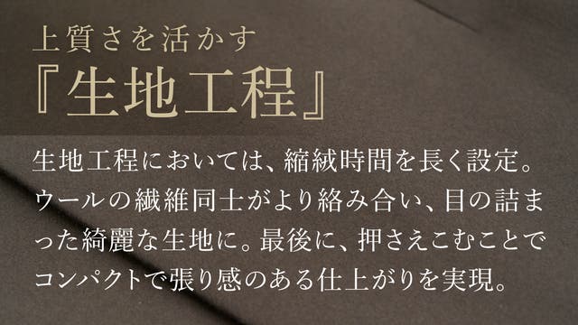 紡績した糸をメルトン(ウール織物)にする工程において、丁寧に、時間をかけて加工しております。