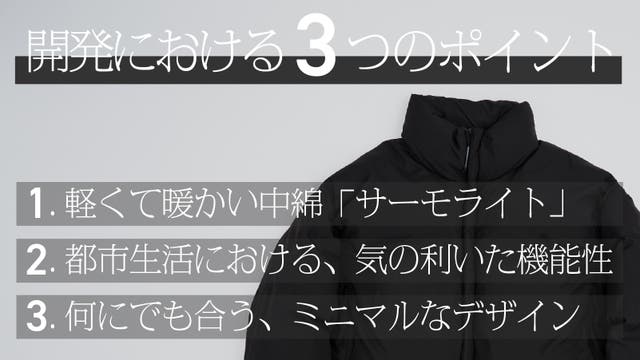「Makuake(マクアケ)」は、実行者の想いを応援購入によって実現するアタラシイものやサービスのプラットフォームです。このページは、 ファッションカテゴリの 「軽くて暖かい『サーモライト』搭載!現代の冬に丁度良い、ミニマルな日本製ダウン。」プロジェクト詳細ページです。