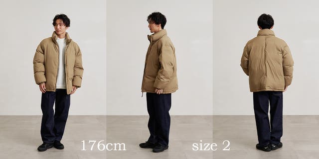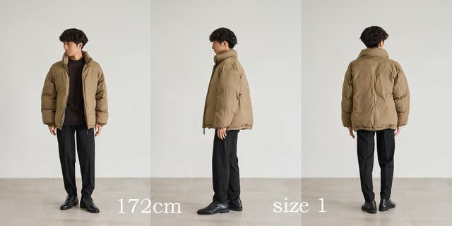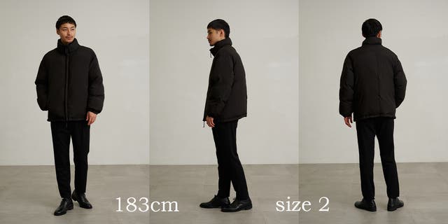 お好みのスタイリングに合わせて、シルエット変化が可能です。ややゆとりのあるシルエットなので、よりコンパクトに着たい方は絞るのがお勧めです。