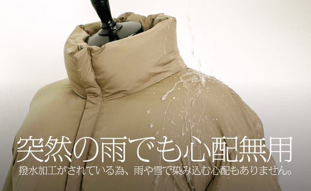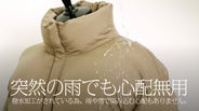 - 着ていて嬉しい機能。『雨に強い撥水性』『凍えないポケットの工夫』『中綿の吹き出しを防ぐ特殊糸』
