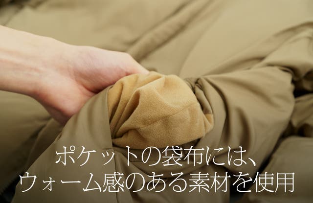 そんな想いから、ポケットに手を入れた時に、”暖かみのある素材”を採用しました。