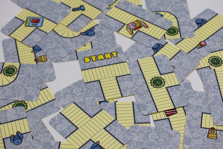 生産ラインの上にパーツ「ネジ・バネ・歯車」が描かれているカードもあります。