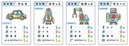 「設計図カード」には、製品を完成させるのに必要なパーツの種類と数が描かれています。
