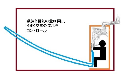 ・効率的に排気をするには、吸気がポイント。風の入り口と出口を確保しなければ、換気はできません。窓を全開しても、うまく換気できないのです。空気の入口をあえて狭くして、空気の流れを作ります。