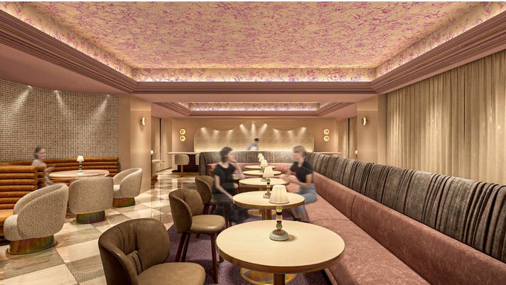 鏡の回廊を抜けると、そこに現れるのはやわらかな光と彩りに包まれたラウンジフロア。