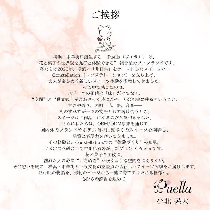 その両方の知見を融合し、“花と菓子を主役に据えた新しい体験ブランド” として誕生するのが Puella です。