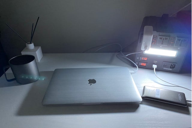 AC出力が3つ(ご自宅にあるコンセントと同じ)、USB(A)出力が2つ(iPhone等を充電する際に使用するものと同じ)、USB(C)が1つ(MacBook等を充電する際に使用するものと同じ)をご用意しており、様々なケースを想定して十分なスペックを搭載しております。