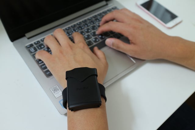PumPiXを腕に装着するだけで、いつでもどこでも気軽に、手のウィルス対策ができます!