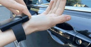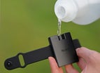 - 腕に装着しているので、いつでもどこでも気軽に手の消毒、1回の補充で300回噴射可能。