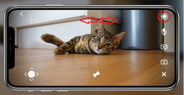 赤レーザー、猫じゃらしをオンにし、画面を左右に触ると、赤レーザー、猫じゃらしが同期し動きます。ペットに興味を与え、一緒に遊ぶことができます。
