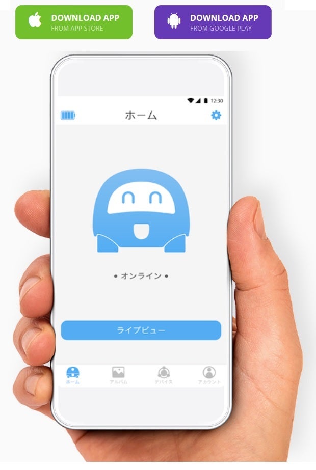 外出先からスマホやタブレットを使ってPUMPKINちゃんを操縦し、ペットに近づいて話しかけたり、遊んだりする見守りロボットです。