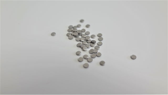 このパンチングの際に副産物として直径3mmの小さなステンレスチールが生まれます(赤丸内)