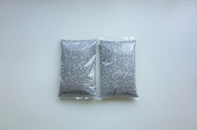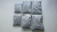 その直径3mmのステンレススチールを重りとして利用するためにビニール袋に詰めました(左から2kg×2個 計4kg/4kg×2個 計8kg/5kg×2個 計10kg)