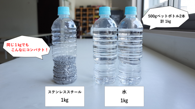 ステンレススチールは比重が大きいので少ない量で大きな質量を得ることができる