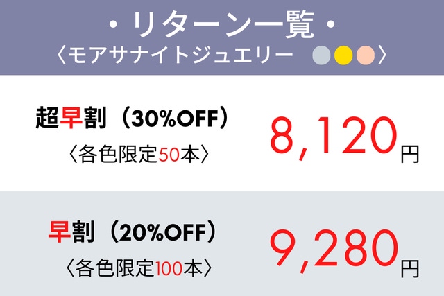 ゴールド:Pure モアサナイトジュエリー1本を早割価格でご案内。