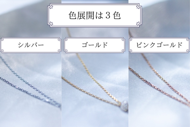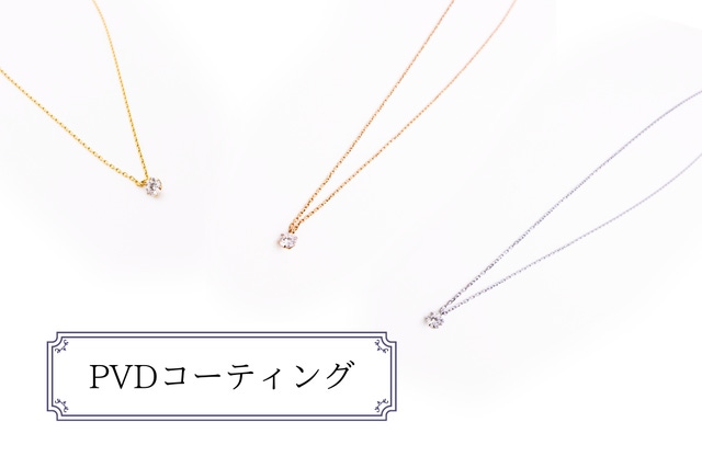 チェーンはPVDコーティングで、シルバー・ピンクゴールド・イエローゴールドに着色。PVDコーティングとは、物理的にステンレスに薄膜を形成する着色法。