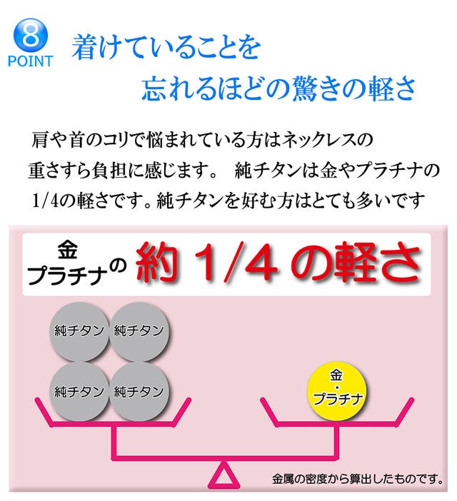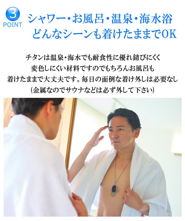 - 純チタンで驚異の軽さを実現!体に優しい金属でお風呂も着けっぱなしでより効果を実感!!