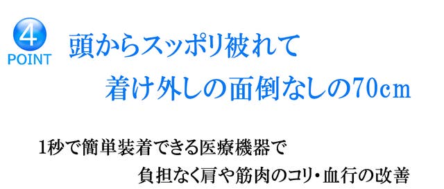 - 1秒で簡単装着できる医療機器 スッポリ被ってお洒落しながらつらい肩や首、筋肉のコリ・血行の改善