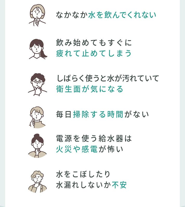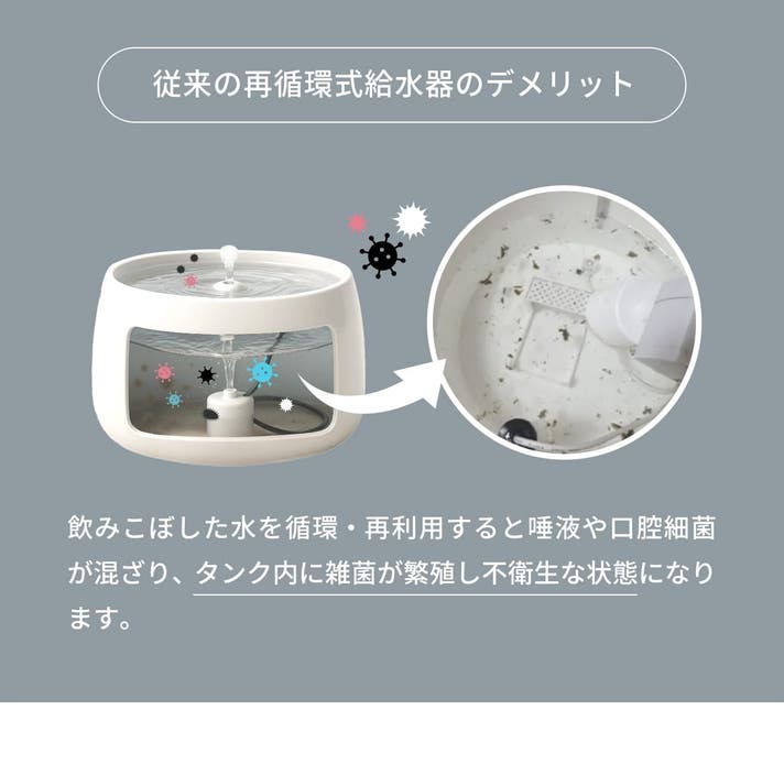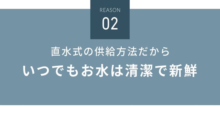 また、飲んだ水とタンクの水が混ざらない特殊構造によって、清潔に保てる設計です。