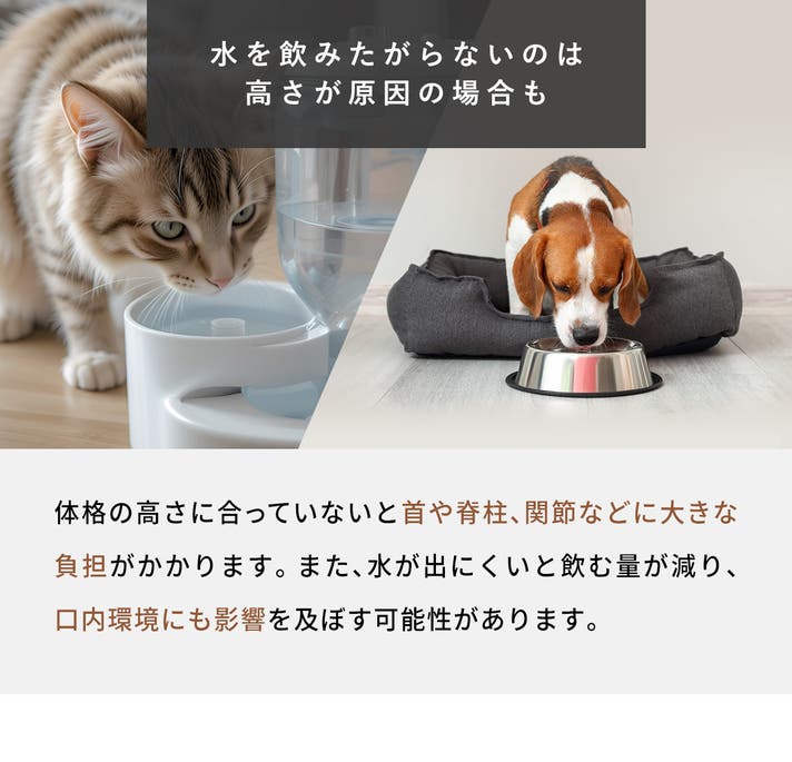 - 選べる高さ|体格に合った高さを選べるため首や関節への負担を軽減し、飲みやすい姿勢をサポート!