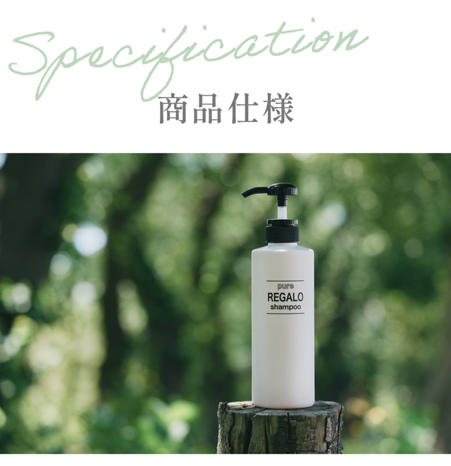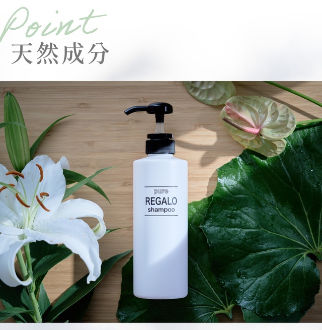REGALOという社名の由来は、スペイン語で「贈り物」という意味です。今回のシャンプーの開発にあたり、自然からのピュアな贈り物という思いを込めて、「pure REGALO shampoo (ピュアレガロシャンプー )」と名付けました。