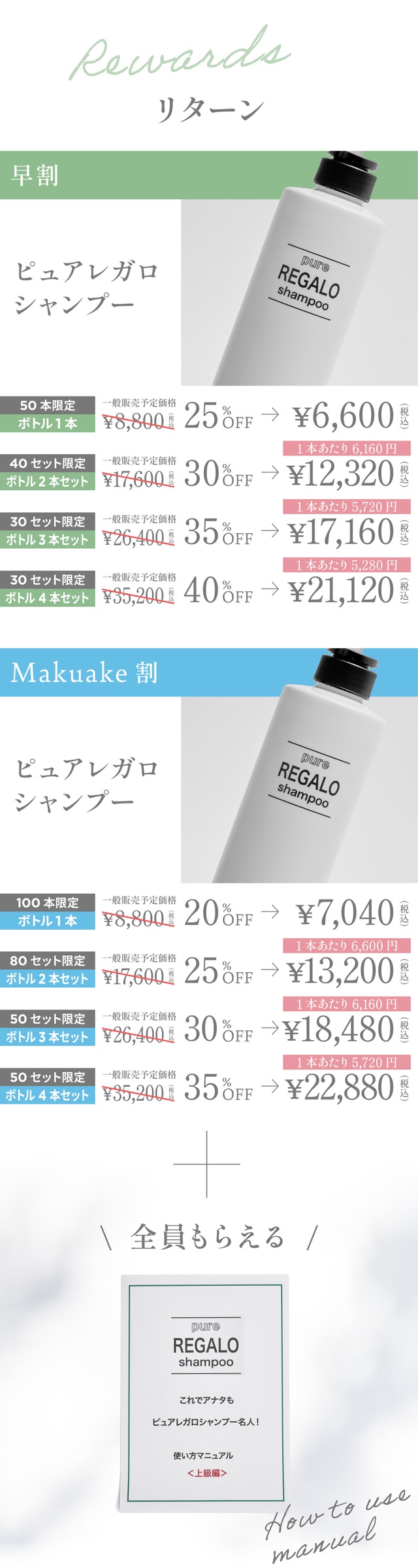Makuake割 25%OFF ピュアレガロシャンプー 2本セット