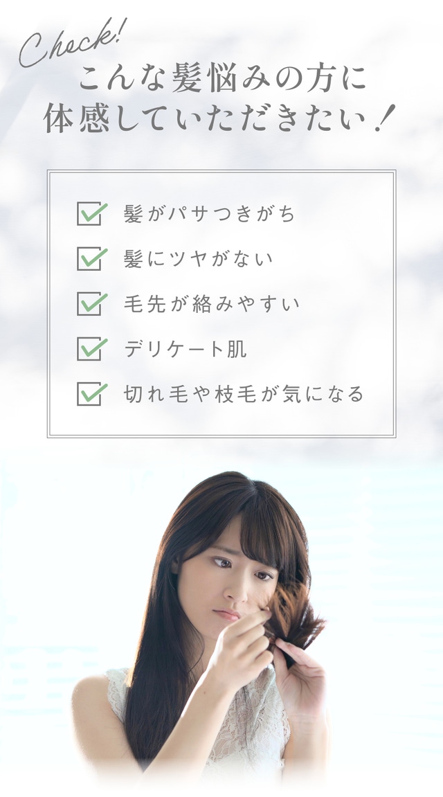 キューティクルが剥がれないよう優しく洗えることから、洗い上がりの手触り、ツヤの変化にご満足いただけるはずです。
