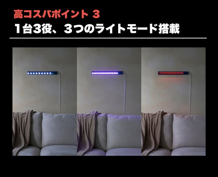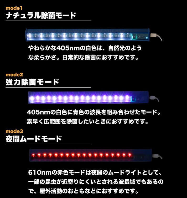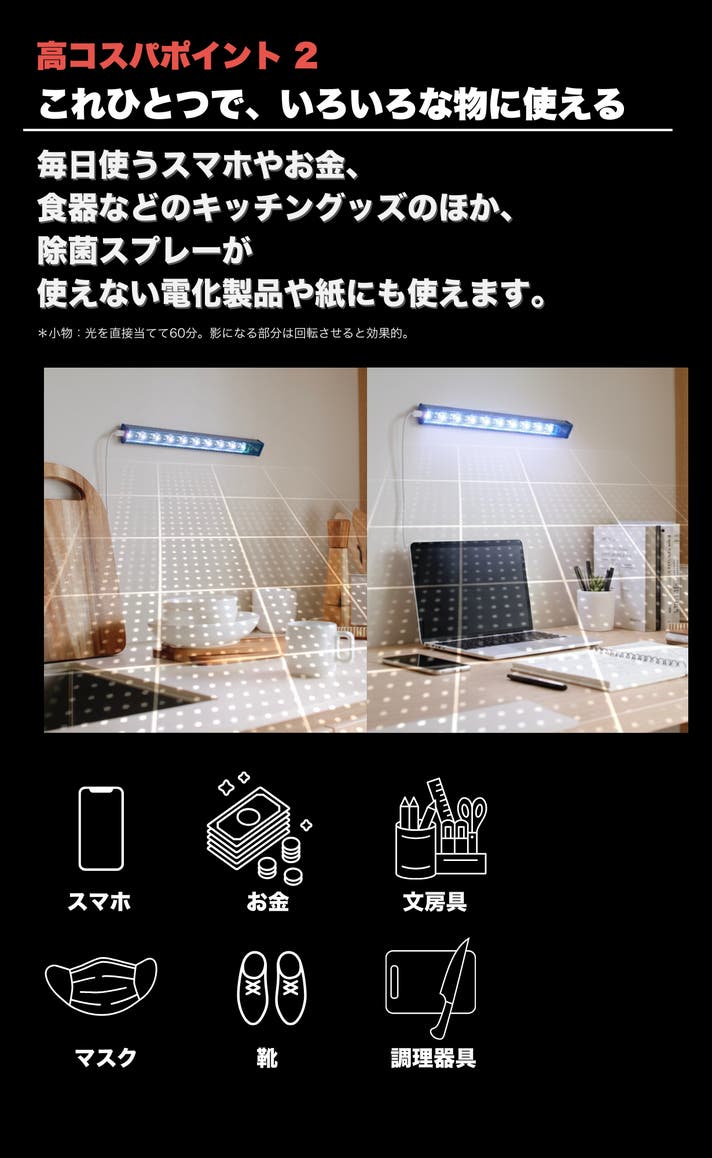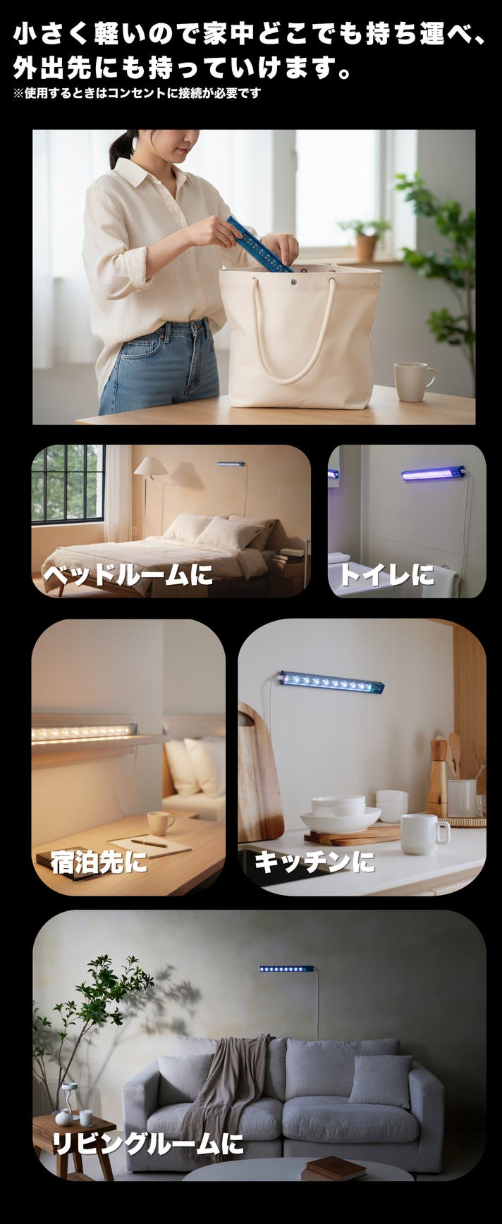 - 【いつもの暮らしにきれいを】自然光に近い波長を採用。人のいる環境でも使いやすいやさしい除菌