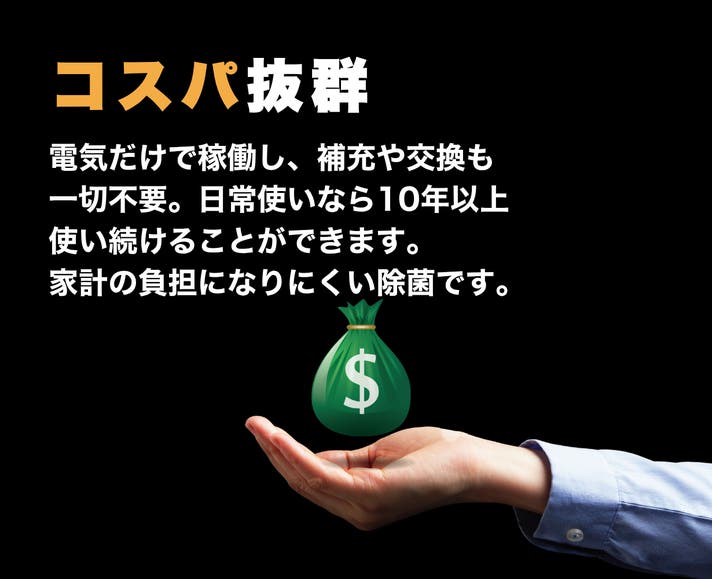 - 【コスパ抜群】電気代だけで長く使える。交換・補充いらずでキレイがつづく