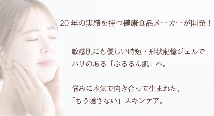 そんな悩みを解決するために、“ぷるるんモア”は名前の通りぷるぷるの形状記憶ジェルを採用しました。このジェルは、肌にのせると形状が元に戻り、まるでパックをした後のような、肌をキュッと引き締めるようなハリ感をすぐに実感していただけます。