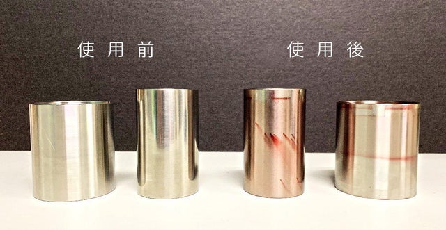 こちらは2時間稼働させた後のステンレス鋼フィルターの写真です。