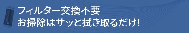 - フィルター不要の特殊設計で頑丈、有害物質を除去、省エネでクリーンな環境を常にキープ