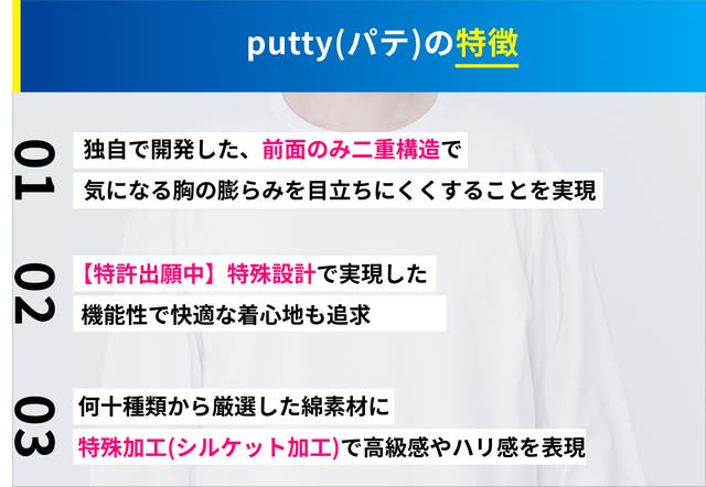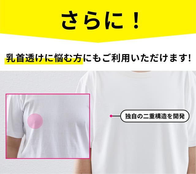 本商品は胸に膨らみがある男性のみをターゲットとしているのですが、前面を二重構造にしているため、テストユーザーの乳首透けに悩む男性からも好評いただきました!