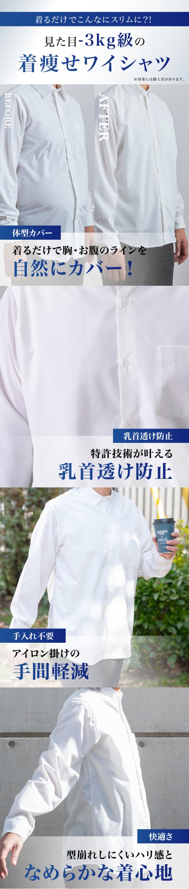 「Makuake(マクアケ)」は、実行者の想いを応援購入によって実現するアタラシイものやサービスのプラットフォームです。このページは、 ファッションカテゴリの 「【特許技術】男性の悩みを解決。見た目−3kg級の着痩せワイシャツ!」プロジェクト詳細ページです。