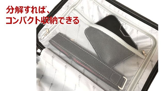また、Puzzle Box Bagは、4つのパーツに分解できるので、バッグ自体が荷物としてかさばることがありません。スーツケースにコンパクトに収納することができます。
