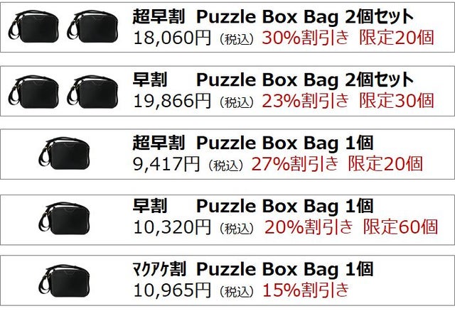 【マクアケ割】環境に優しいPuzzle Box Bag 1個 15%割引き