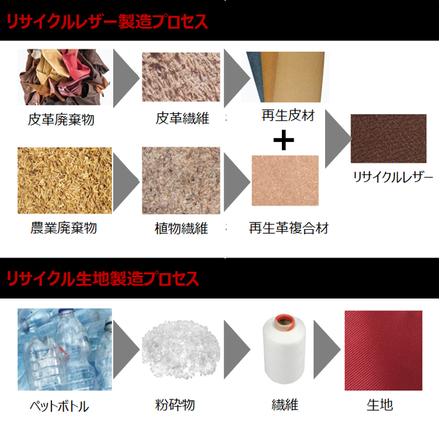 - 廃棄物を減らすリサイクル材を高品質な皮革や生地に再生・活用するエシカルデザイン