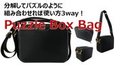 これにより、箱型のショルダーバッグとして利用するだけでなく、側面同士をつなげて薄型ポーチとして使ったり、Puzzle Box Bagを2個つなげればバニティケースとしても使用できます。