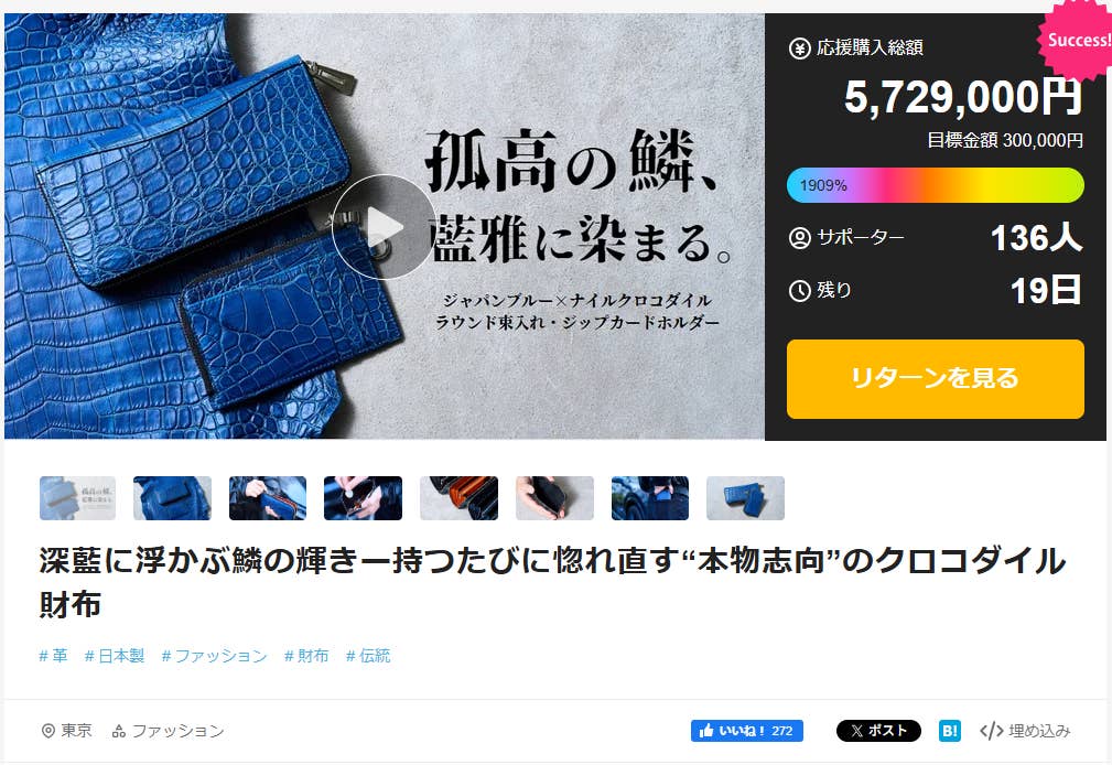 クロコダイル革をはじめ、エキゾチック革専門のメーカーとして、皆様に、クロコダイル革の良さを伝えるためにmakuakeさんに場所を頂いて、頑張ってきました。