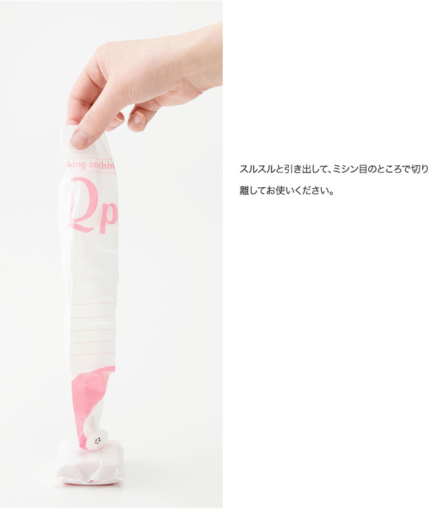 手の中に入る小さなパックからスルスルスルと10枚のポリ袋が引き出せます。ミシン目のところで切って広げれば意外に入る便利な袋。使い方はあなた次第でひろがります。